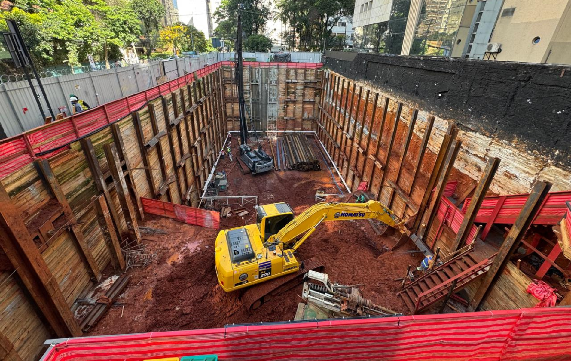 Um dos principais desafios desse projeto é a complexidade logística no canteiro, com pouco espaço para estoque de materiais e trânsito de equipamentos e pessoas.